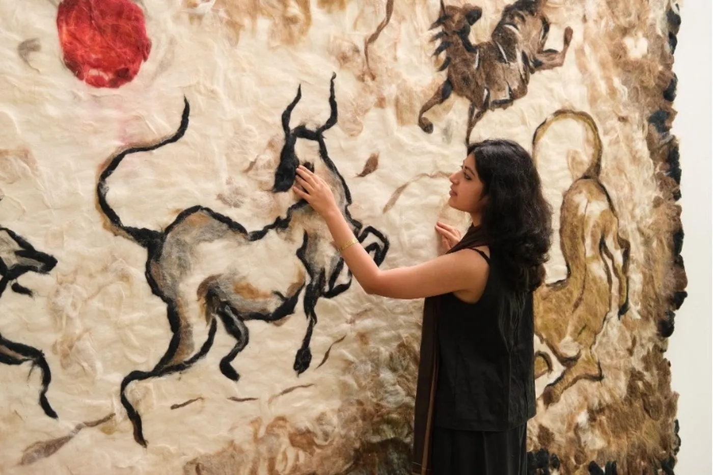 The material language of the work reflected this crossing of contexts. Indian and South African wool fibres were combined with found stones, coloured pebbles, wood from fallen trees, and collected charcoal. Each material carried its own history and conditions of use, grounding the work within multiple geographies. I realised my work through hand-felting in sheep wool - one of the most ancient techniques in one of the most regenerative materials.